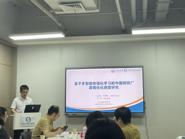 林泽伟以“基于多智能体强化学习的中国废钢资源优化调度研究”为主题,介绍了基于动态仿真和机器学习的钢铁行业多目标优化路径,以及通过多智能体深度强化学习的废钢资源优化调度和钢铁厂转型研究;张瀚心围绕“宝钢水系统时序运行诊断与优化研究”,分享了基于钢铁企业水系统“水-能-碳”耦合网络实现水系统时序运行异常诊断的方法,并探究钢铁企业水系统稳定运行多目标优化与协同发展路径;李欣怡围绕“全球钢铁行业碳足迹与碳泄露分析”的主题,介绍了通过前向和后向产业关联估算隐含碳排放的方法,并结合政策背景,对中国、美国及欧盟国家进行了案例分析。