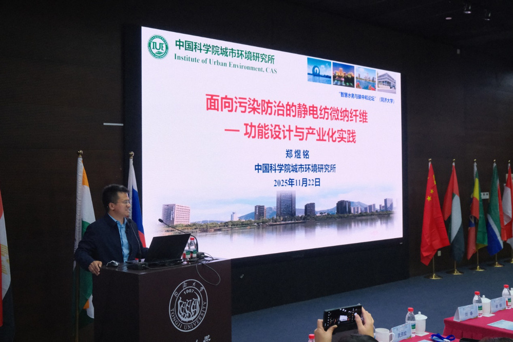 中国科学院城市环境研究所副所长郑煜铭带来“面向污染防治的静电纺微纳纤维—功能设计与产业化实践”的报告,系统介绍了高压静电纺丝技术的原理与发展历程,重点展示了该技术在水质净化、空气过滤、高盐废水处理等环境污染防治领域的创新应用与产业化成果。