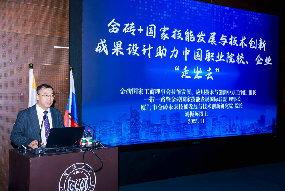 在随后举行的闭幕式上,金砖国家技能发展与技术创新大赛组委会执委会主席刘振英发表专题报告并闭幕致辞。他充分肯定了本次赛事的组织水平与选手表现,并指出,一带一路暨金砖国家技能发展与技术创新大赛作为促进金砖国家间教育合作、技能开发和人文交流的重要平台,是金砖国家最高领导人会晤筹备委员会认可、经中华人民共和国外交部同意、金砖国家工商理事会批准的国际大赛,持续为绿色转型与高技术技能人才培养提供动力。