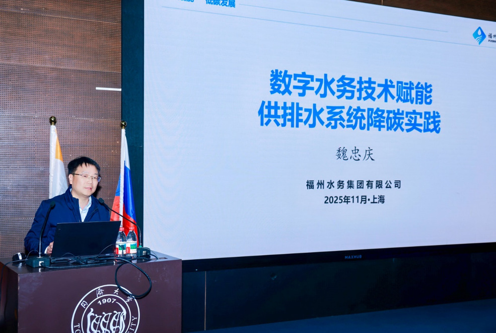福州水务集团有限公司副总经理魏忠庆带来“数字水务技术赋能供排水系统降碳实践”的报告,以福州水务为例,系统阐述了数字水务技术在供排水系统碳减排中的应用路径,充分展现了数字化技术在水务低碳转型中的关键作用。
